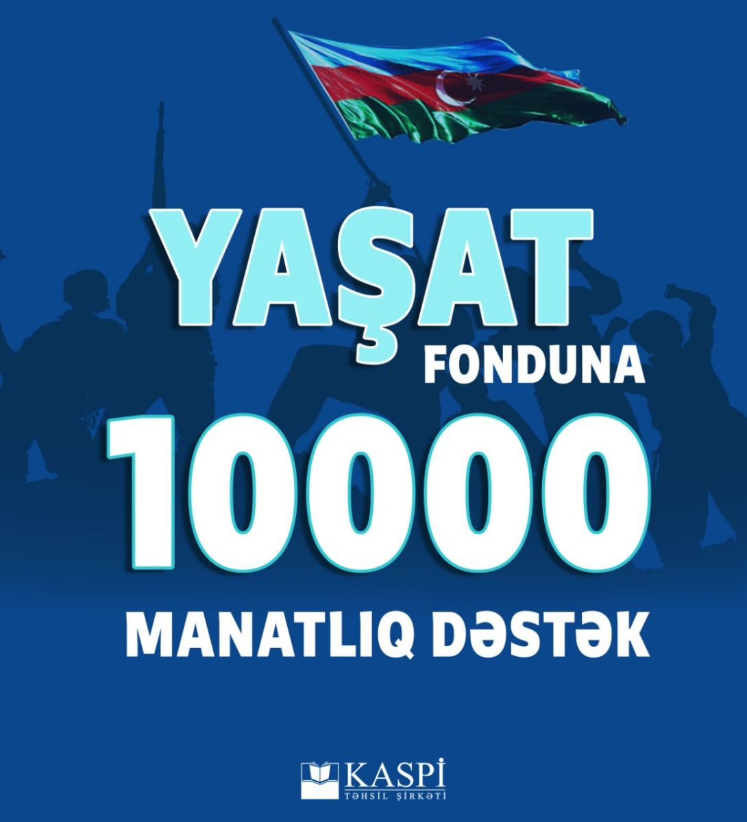 Kaspi Təhsil Şirkəti ölkəmizin ərazi bütövlüyünün müdafiəsi ilə əlaqədar yaralananların və şəhid ailələrinin təminatına dəstək məqsədilə yaradılmış “YAŞAT” Fonduna 10 000 (on min manat) ianə köçürüb.