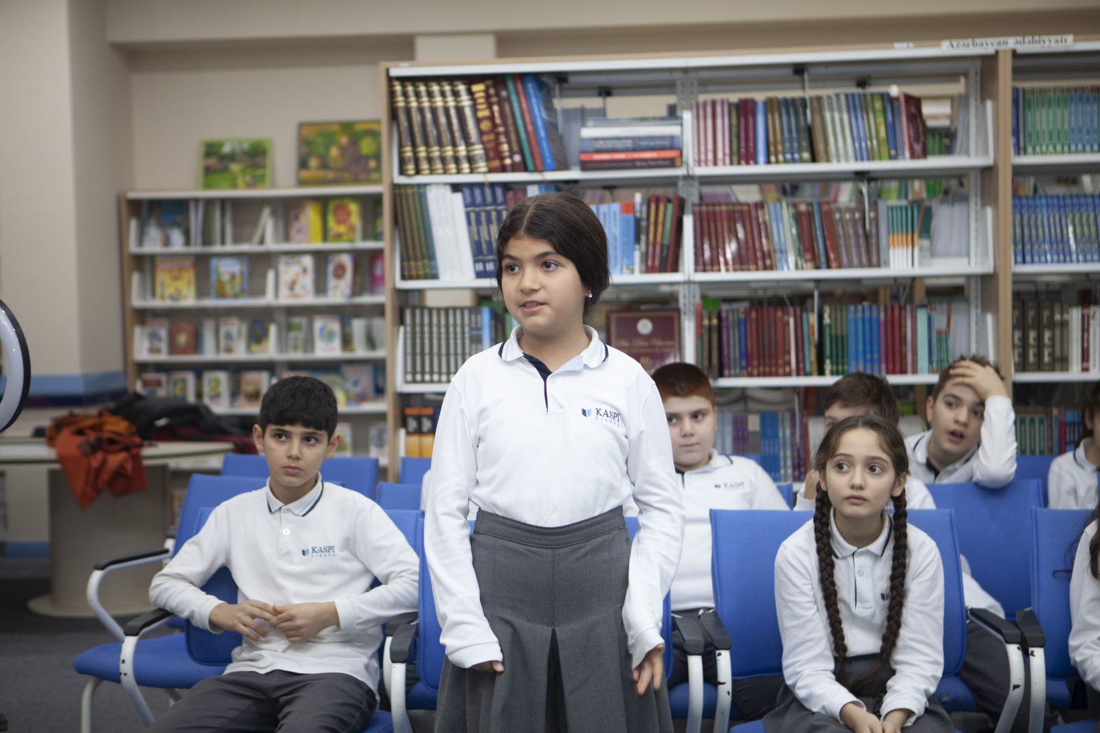 Kaspi Liseyinin Ağ Şəhər filialında “Sevincli dünyaya səyahət” adlı tədbir keçirilib. Liseyin kitabxanası tərəfindən 5-ci sinif şagirdləri üçün təşkil edilən tədbirin qonağı Azərbaycan Yazıçılar Birliyinin üzvü, uşaq yazıçısı, şair, tərcüməçi Sevinc Nuruqızı olub. olub.