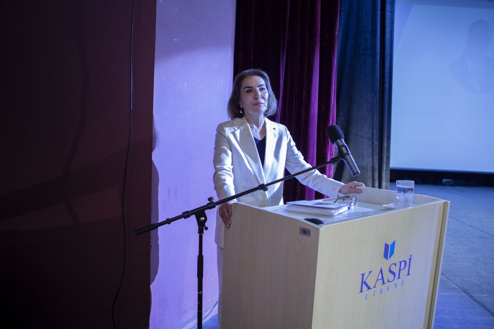 Kaspi Təhsil Şirkətinin İdarə Heyətinin sədri Sona Vəliyeva Liseyi bitirən məzunları təbrik edərək hər bir fərdin şəxsiyyət və layiqli vətəndaş kimi formalaşmasında, onun cəmiyyətdə mövqe tutmasında valideynlərlə birgə məktəbin də müstəsna rolu olduğunu qeyd etdi: “Bu tədris ili ərzində qazandığımız nailiyyətlər böyük müəllim ordusunun və bizim zəhmətkeş şagirdlərimizin uğurlarıdır. Həmçinin valideyn olaraq sizin hər birinizin zəhmətidir”. S.Vəliyeva Ulu Öndər Heydər Əliyevin Azərbaycan təhsilinin inkişafına mühüm töhfələr verdiyini xatırladı: “Ulu Öndər Heydər Əliyev dünyanın ən böyük siyasətçiləri sırasında tutduğu yerə görə müəllimlərinə özünü borclu sayır və oxuduğu məktəbə həmişə minnətdarlıq edirdi. Bizim müqəddəs bir işlə məşğul olmağımızda Ulu Öndərin bu fikirləri həmişə böyük stimul yaradır. Kaspi Liseyi olaraq məqsədimiz də millətin gələcəyi olan təhsilimizin inkişafına töhfə vermək, ölkəmizdə sağlam rəqabət mühitini formalaşdırmaq, xarici ölkələrdə olan həmyaşıdları ilə yarışa bilən, savadlı və uğurlu, milli dəyərlərə sadiq nəslin yetişməsinə nail olmaqdır. Eyni zamanda, Ümummilli Lider Heydər Əliyevin siyasətini uğurla davam etdirən Prezident İlham Əliyevin bu sahədə həyata keçirdiyi işlərə dəstək göstərmək əsas hədəflərimizdəndir”.