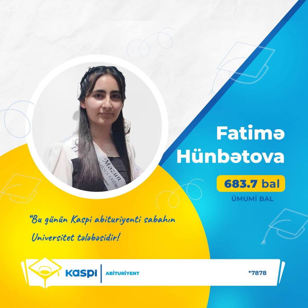 Buraxılış və Blok imtahanları üzrə birlikdə ümumi nəticəsi 600 baldan yuxarı olan Kaspi Abituriyentlərinin sayı 38 nəfərdir və maksimum nəticə 683,7 balla Fatimə Hünbətova Kaspi Çempionudur!