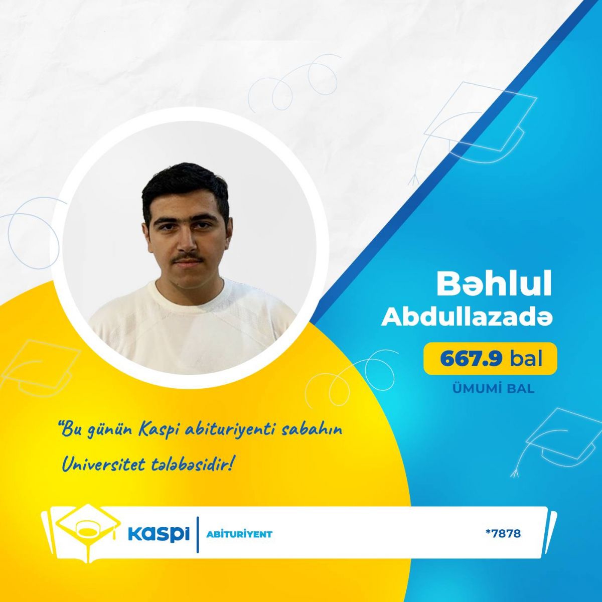 137 Kaspi abituriyenti Buraxılış imtahanında 200 baldan yuxarı nəticə göstərmişdir. Respublika üzrə 53 abituriyent maksimum nəticə - 300 baldan toplamışdır və bu siyahıda 3 Kaspi Abituriyenti də var: Lalə Xancanova, Elşən Yusifov, Səidə Rəhimova - Kaspi Çempionlarıdır!