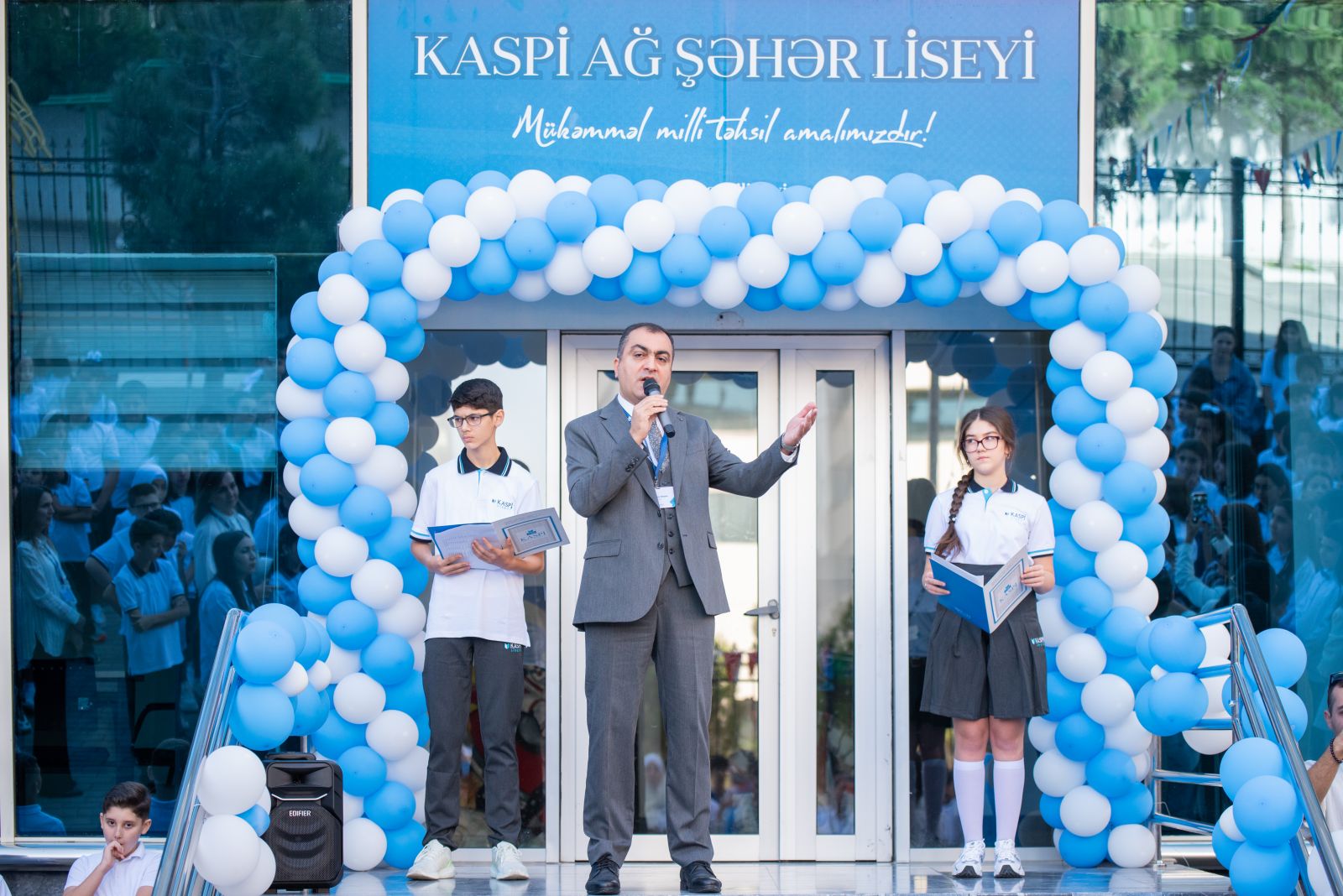 Kaspi Ağ Şəhər Liseyinin direktoru Həsən Həsənov yeni dərs ilinin başlaması münasibətilə şagird, müəllim və valideynləri təbrik etdi: “Keçən tədris ilində şagirdlərimizin ələ etdikləri uğurlar, beynəlxalq bilik yarışlarında qazandıqları mükafatlar, məzunlarımızın buraxılış imtahanı və ali məktəblərə 100 faiz qəbil imtahanı nəticələri bütün kollektivimizi sevindirir və yeni dərs ilinə ruhlandırır. Artıq yeni dərs ilimiz başlayır. Ömür kitabında həm müəllimlərimiz, həm şagirdlərimiz üçün yeni səhifə açılır. Bizi həmin kitabda gözləyən boş səhifələr var. Biz həmin boş səhifələrə yeni dərs ilindəki uğur və nailiyyətlərimizlə imza atacağıq. Bu fürsətdən istifadə edib Bilik günündə üzümüzü şagirdlərə tutub deyirik ki, gələcəyiniz üçün xəyallar qurmaqdan çəkinməyin. Əminəm ki, quracağınız xəyallar və arzuları Kaspi liseyinin kollektivi ilə birlikdə həyata keçirəcək və qazanılan nailiyyətləri tədris ilinin sonunda birlikdə qeyd edəcəyik”.